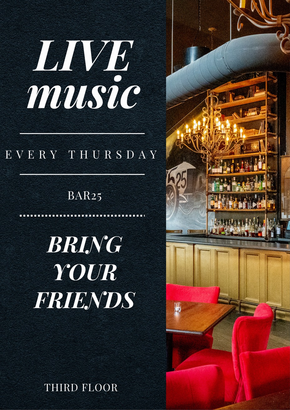 Join us on our third floor from 7–9 PM for rotating local artists, delicious food, and handcrafted cocktails in our signature Bar25 setting. It’s the perfect way to unwind and elevate your weeknight.